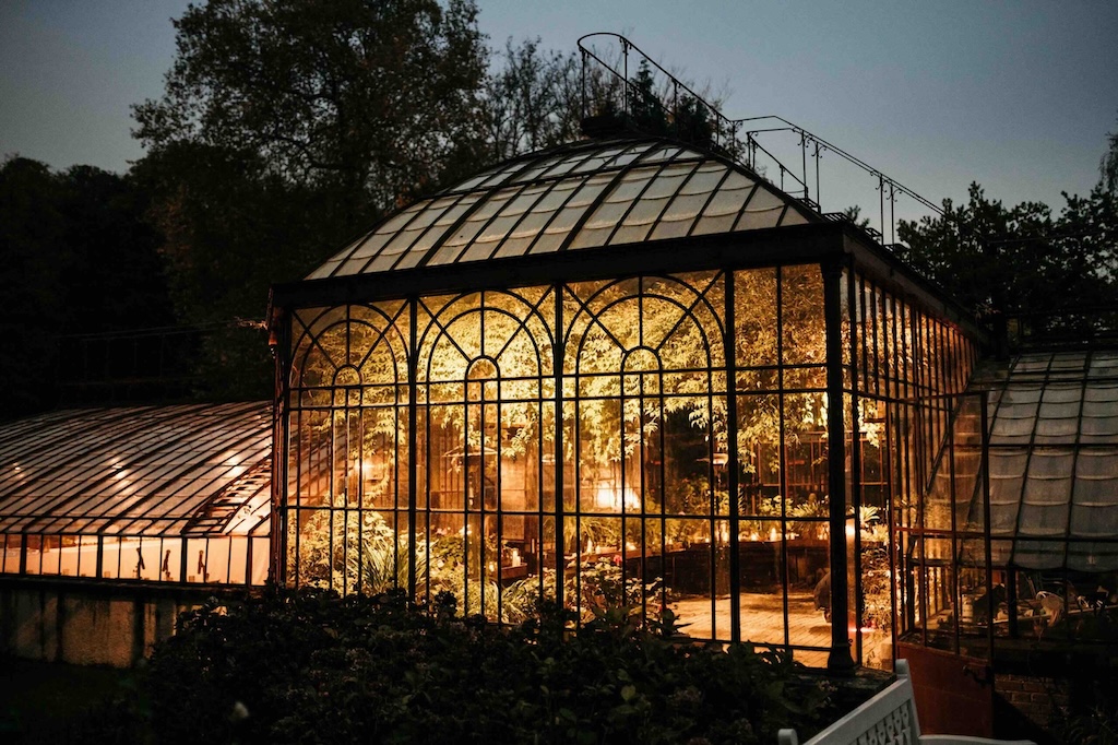 Recevez vos invités dans nos espaces uniques : une grange rénovée de 180 m², un théâtre Louis XVI du XVIIIe siècle, un jardin fleuri et une serre en verre de 130 m².