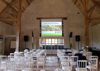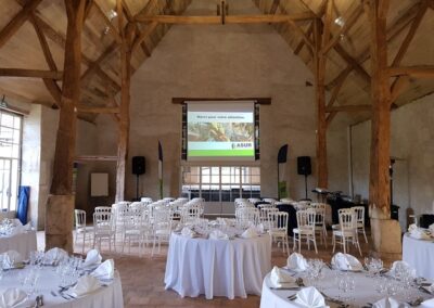 Deux lieux emblématiques pour organiser un séminaire d’entreprise : une grange lumineuse de 180 m², ouverte sur le jardin, et un théâtre attenant de 50 m², parfait pour des présentations jusqu’à 60 personnes.